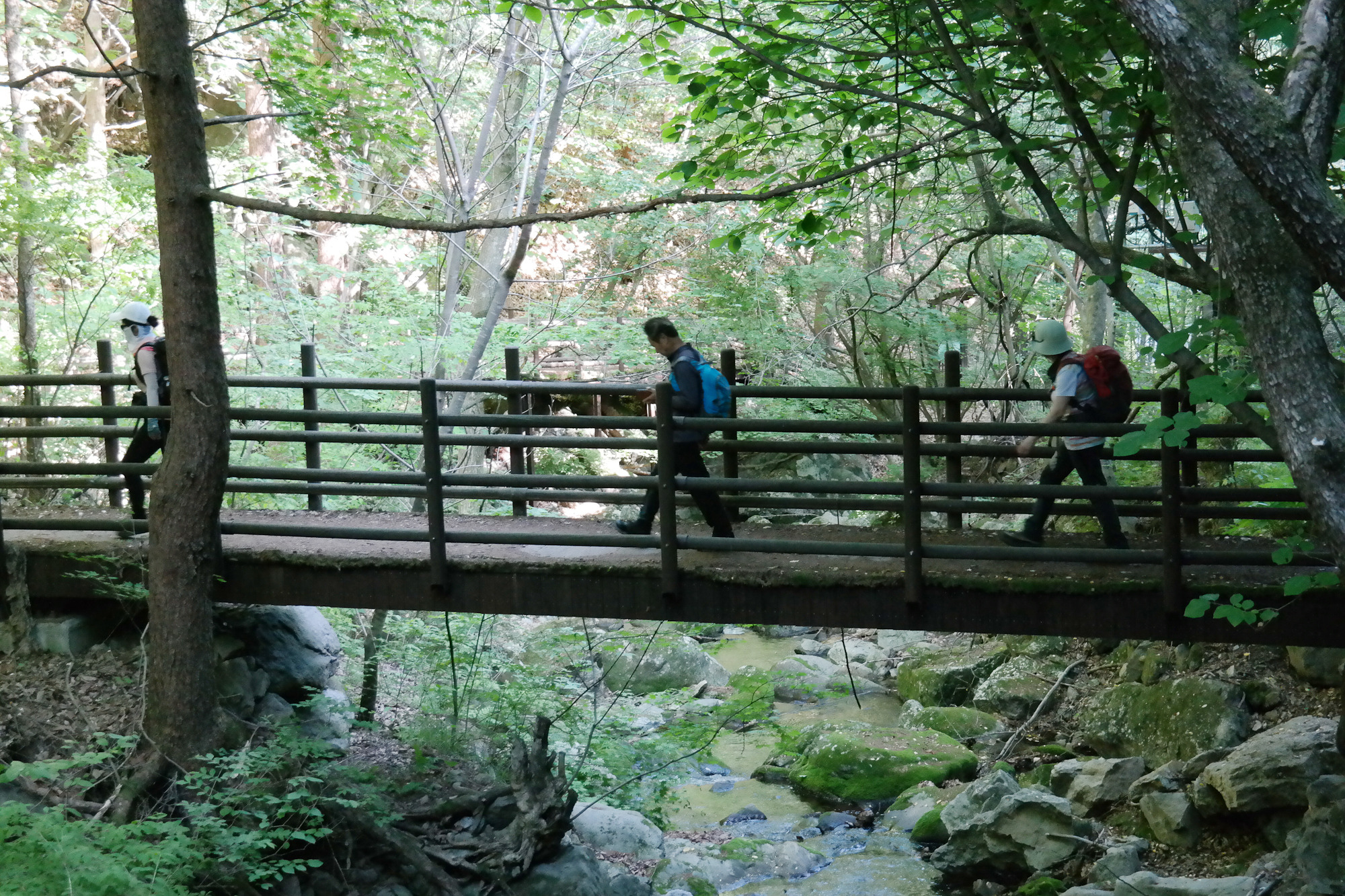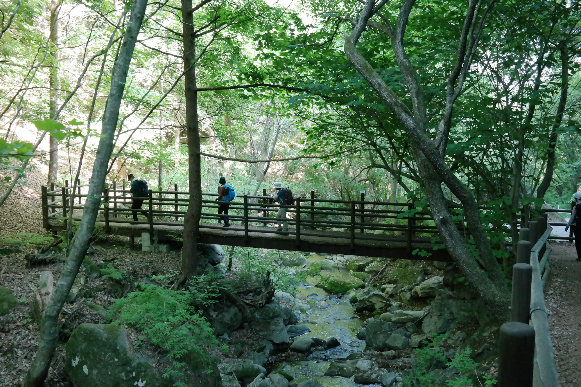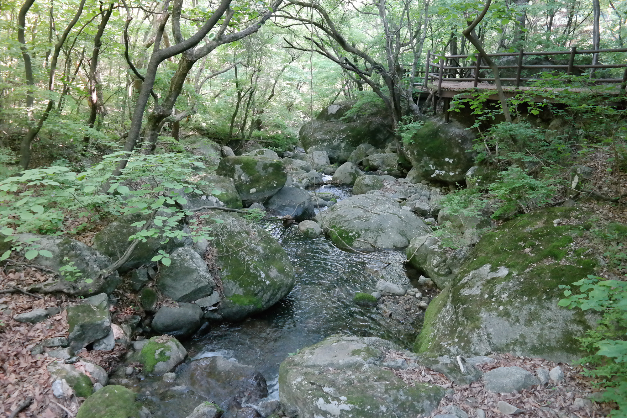 한참 내려와서 발견한 물가. 여기서 지친 발바닥 열기를 식혀줬습니다.