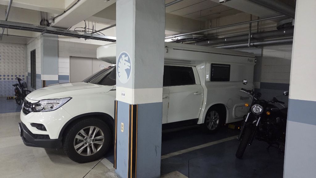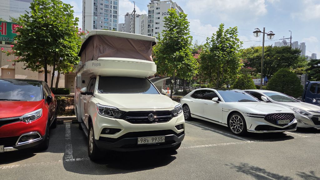 에어컨은 이동형 에어컨 있어서 드리며 한번 사용했던 외부 어닝텐트, 오수통 드립니다 차량 높이는 225cm라서 230cm 지하주차장 진입가능합니다.