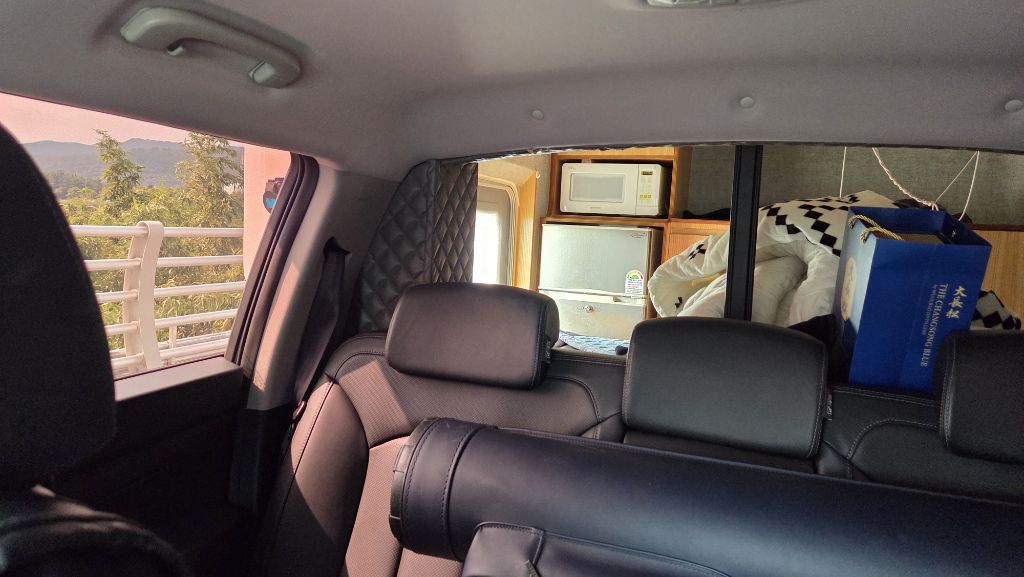 캠핑칸에 전자렌지, 냉장고는 있으며, 티브이는 연결이 잘 안되었는지 현재 나오지 않습니다.