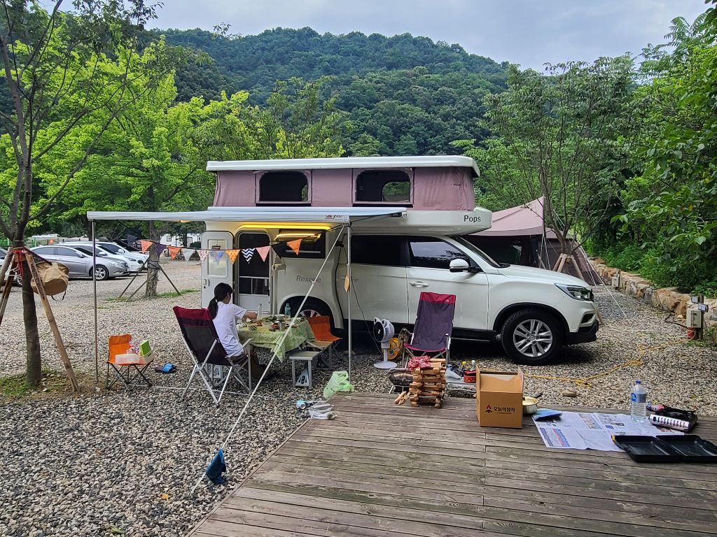 예전 루프탑텐트때와는 차원이 다른 간편함으로 반찬, 밥 정도만 냉장고에 넣어서 전자렌지