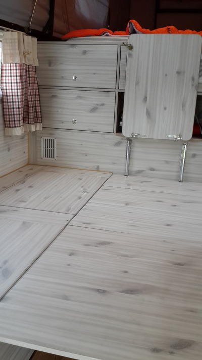 통로공간을 마루바닥 형식으로 만들 수 있어 좌식사용 및 취침시 어른 2명이 잘 수 있는 공간이 확보됩니다.