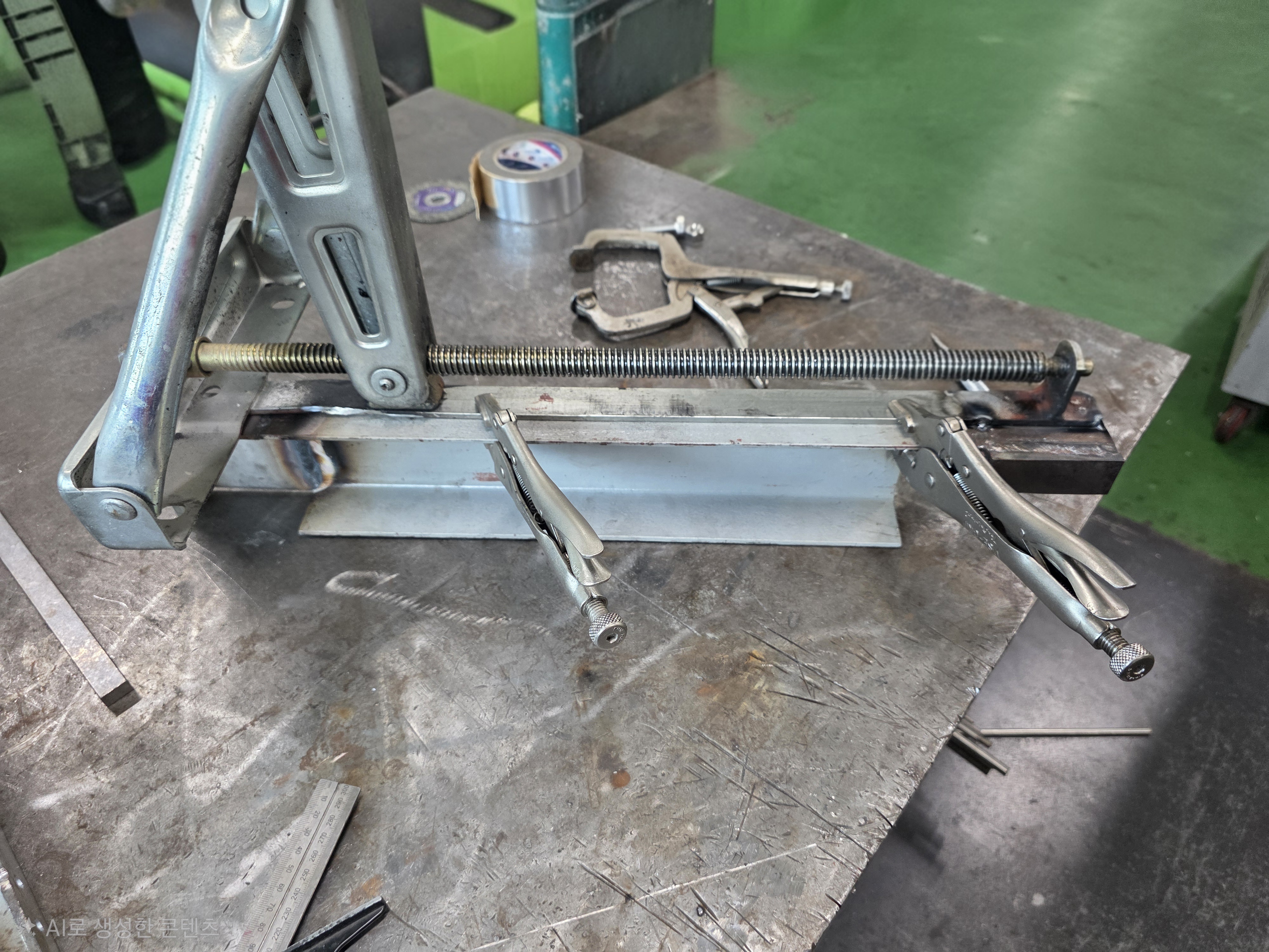 C형강으로 프레임 만들어서 변형부를 교정하면서 용접해줍니다.