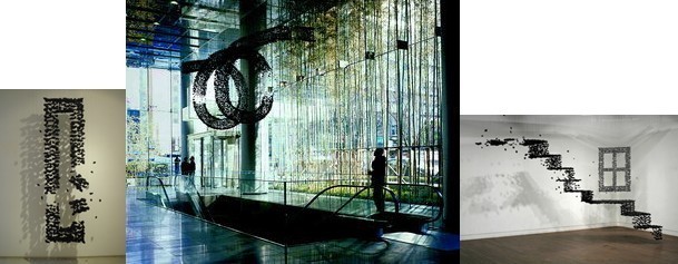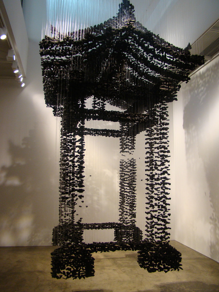 숯을 참치잡이 낚시줄로 매달아 멋진 한옥을 만들어놓았다.