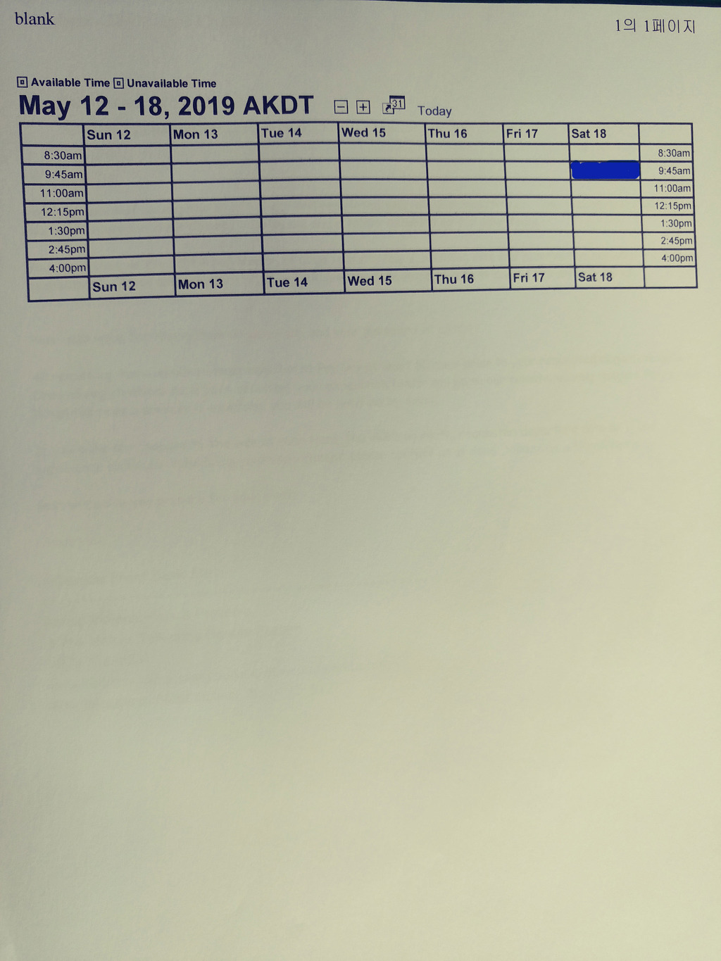 알려준 ID 와 PW 로 Timetrade 에 들어가 상기와 같은 시간표에 내가 원하는 날짜와 시간에 체크하고 제출한다.