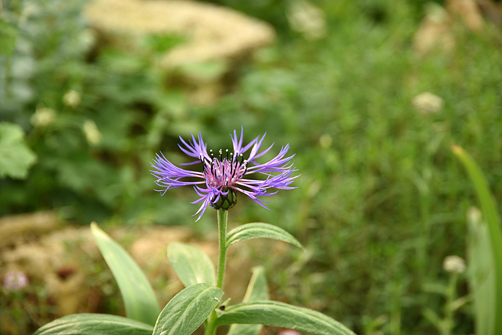 양인데 가장자리에 톱니가 있다. 꽃줄기 끝에서 5~6월에 엷은 자주색 꽃이 산형(繖形) 화서