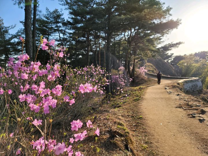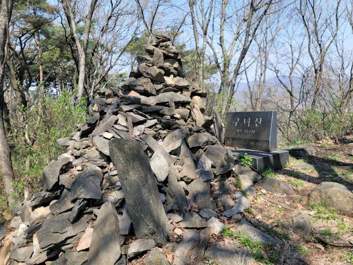 산행구간: 증평역-삼발랭산(170m)-옥녀봉(189m)-성재산(256.5m)-육묘산/삼보산 정상석(273m)-삼보산(250m)-작은삼보산(214m)-산보산(250m)-초정고개-구녀산(499m)-이티재-이티봉(468.8m)-상당산(491.5m)-상당산성길-망산(348m)-우암산터널-우암산(353m)-청주대(약 32km)('22.4.16.토)