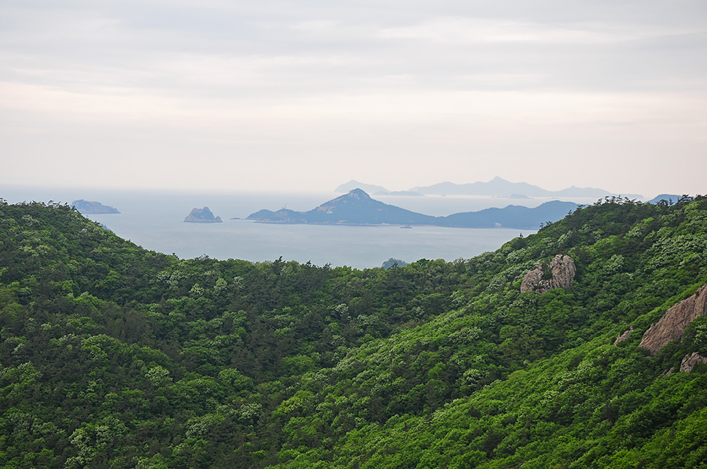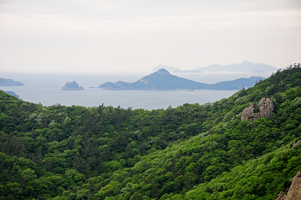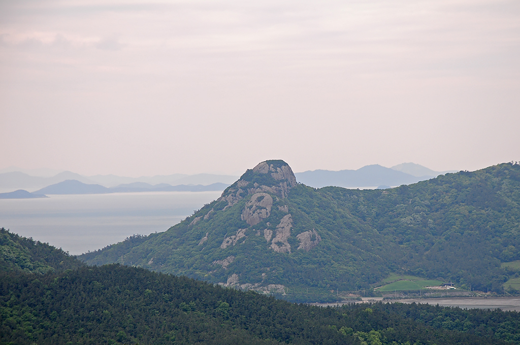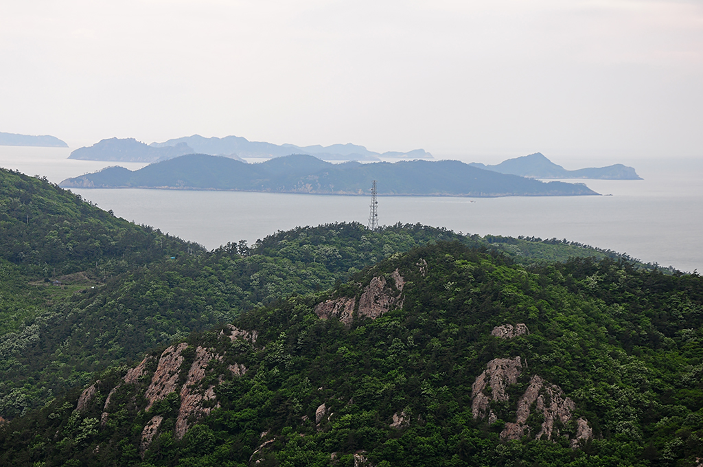 동석산 정상에서 서쪽 조망, 가운데는 각흘도(50m)