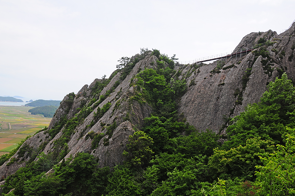 다. 워낙 가파른 절벽이기 때문에 위험한 구간 군데군데 철제로 안전난간과 계단이 설치되어 있다.