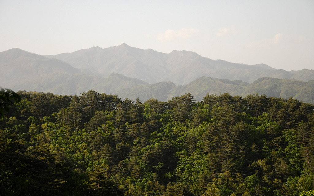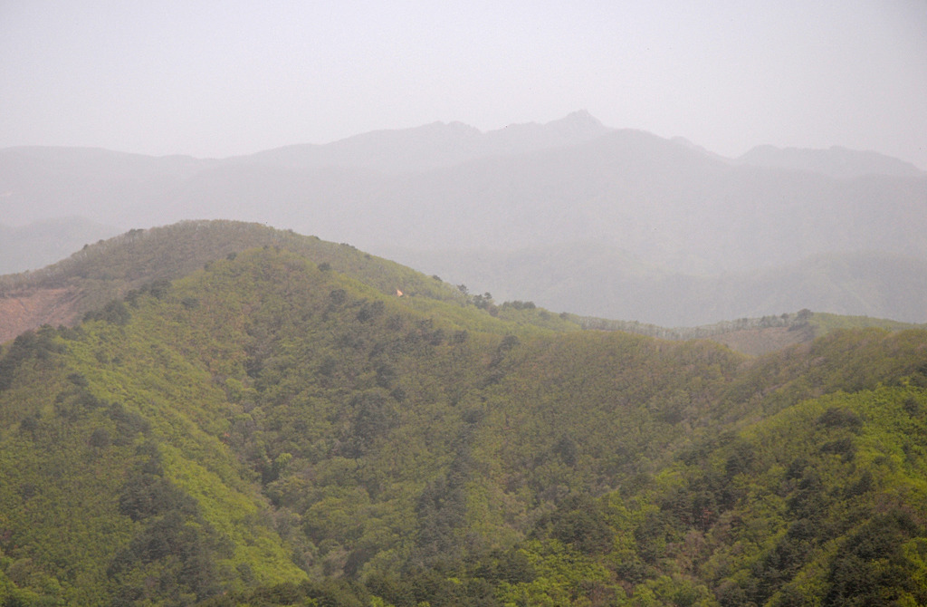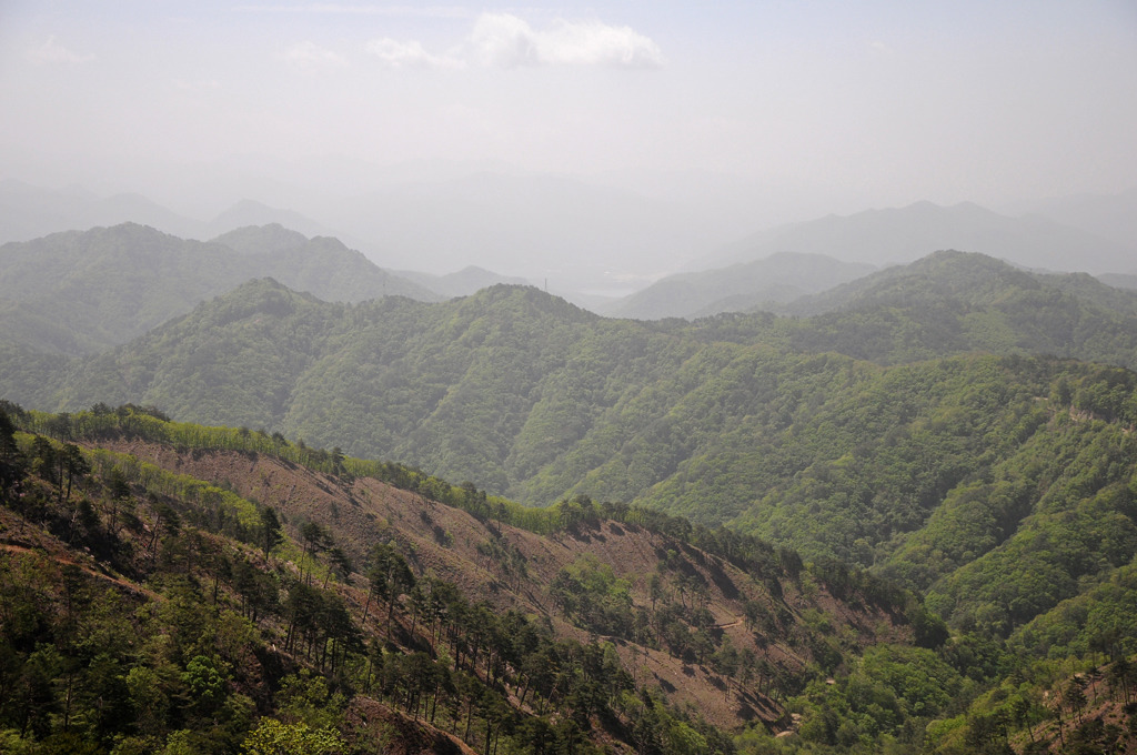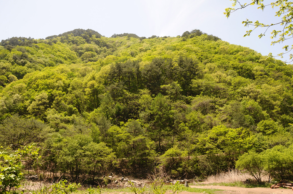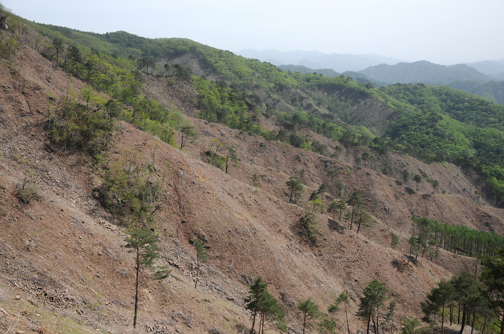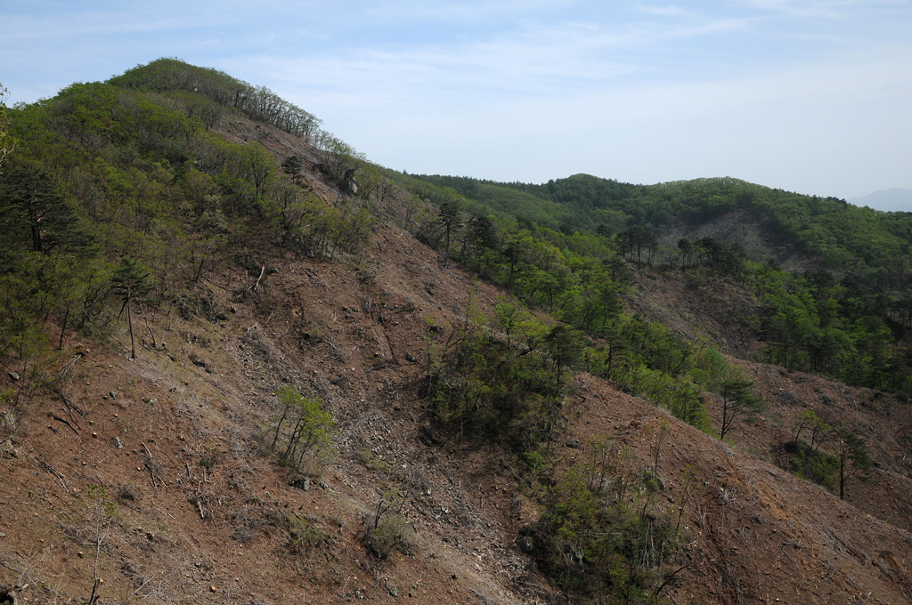 면을 벌목하고 그야말로 피나게 깎았다. 멀리 하늘금은 좌가리 우사명이다.