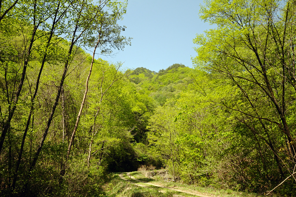 지나고 깊은 골짜기 굽어보면 신록이 눈부시다.