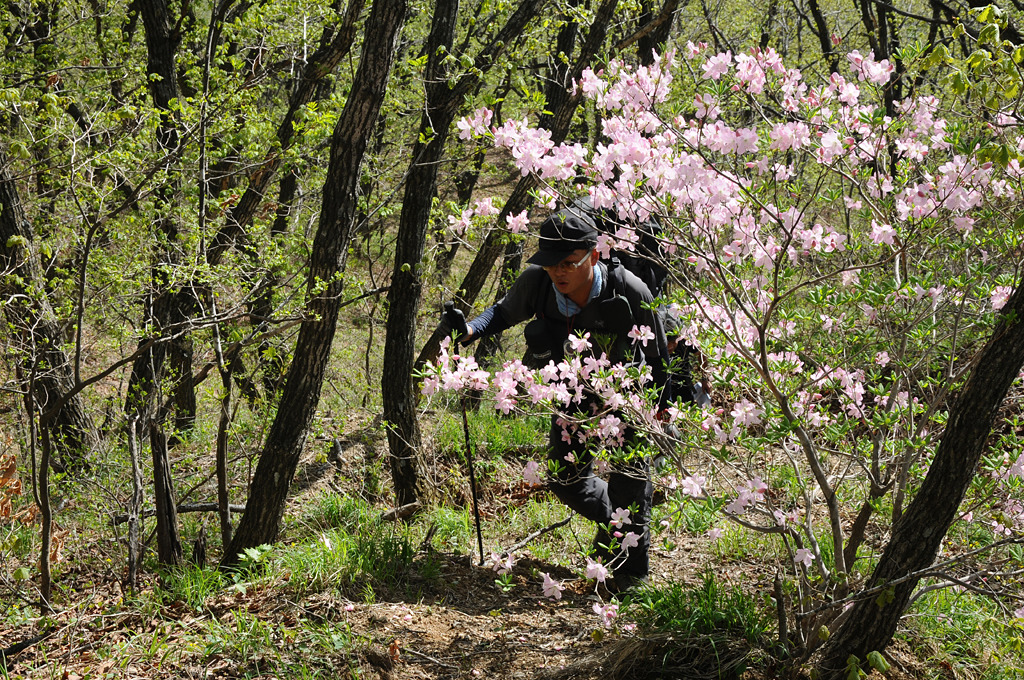 꽃이 자라 꽃을 피웠다. 667m봉을 넘고부터는 줄곧 오르막이다. 가도 가도 철쭉 꽃길이다.