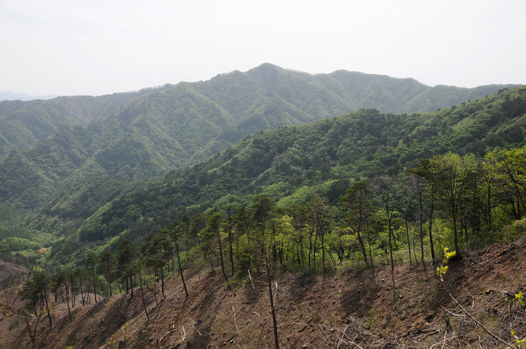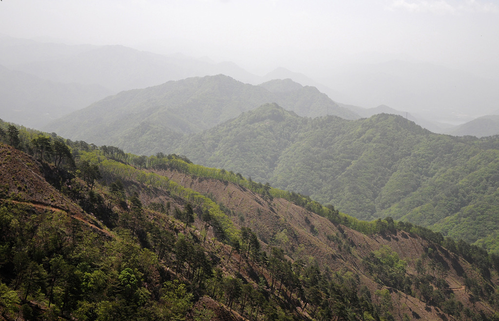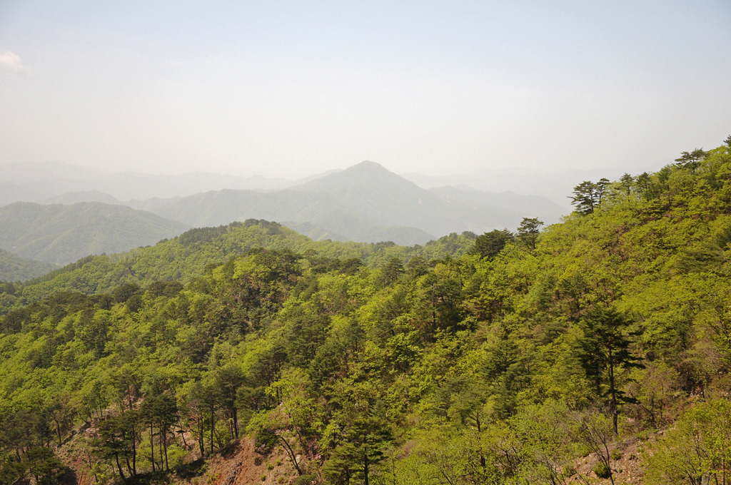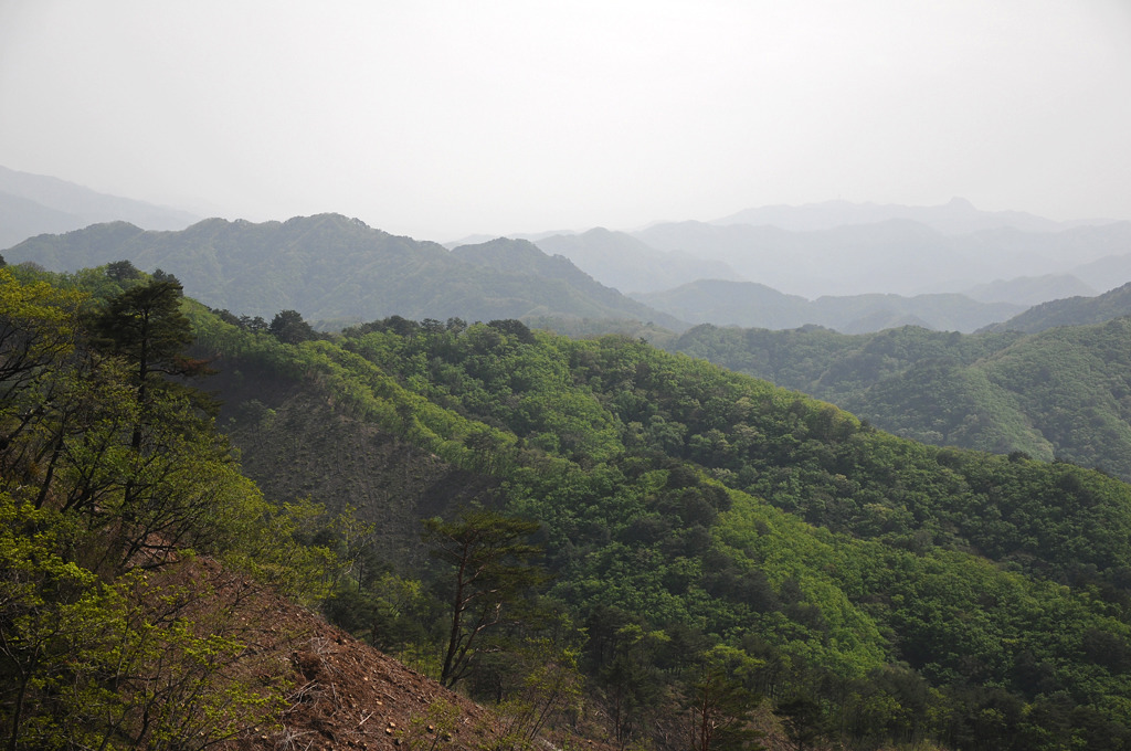 경점이다. 남쪽 사면을 벌목하여 시야가 훤히 트인다. 사명산이 신록 위로 불쑥 피어난 한 떨