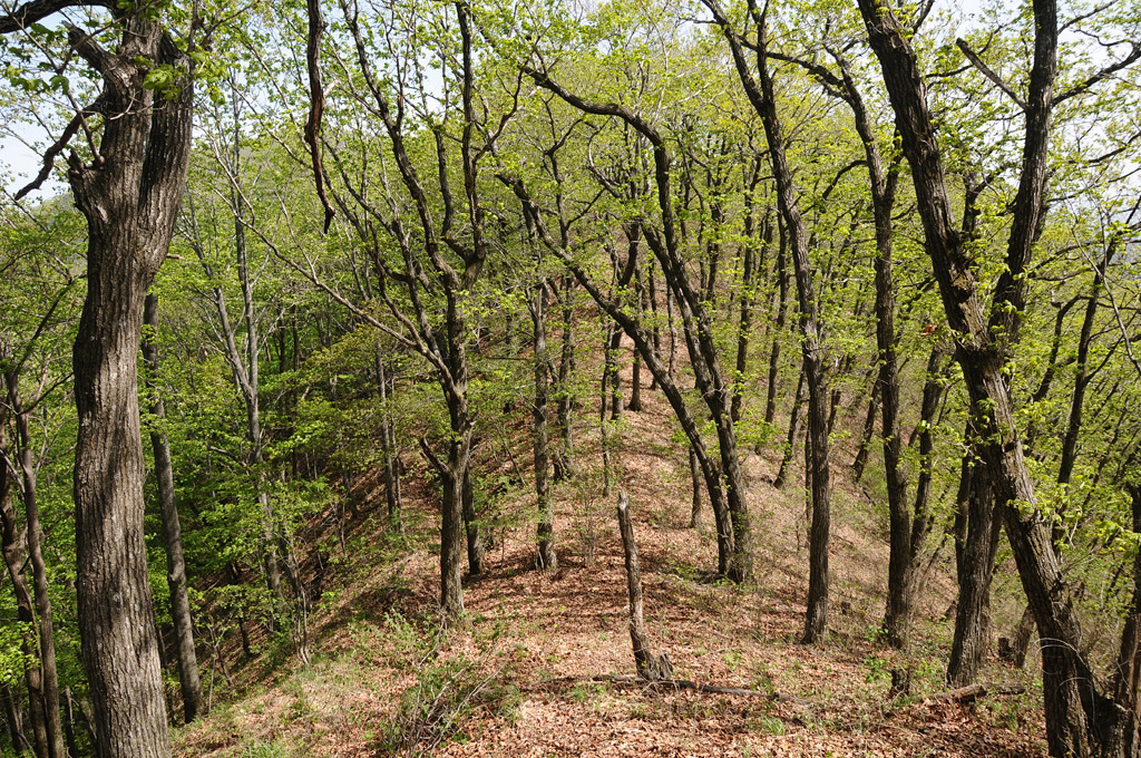 사면에 들려 원근의 산첩첩 감상한다. 기룡산 정상은 요새다. 겹겹이 두른 교통호를 넘어야