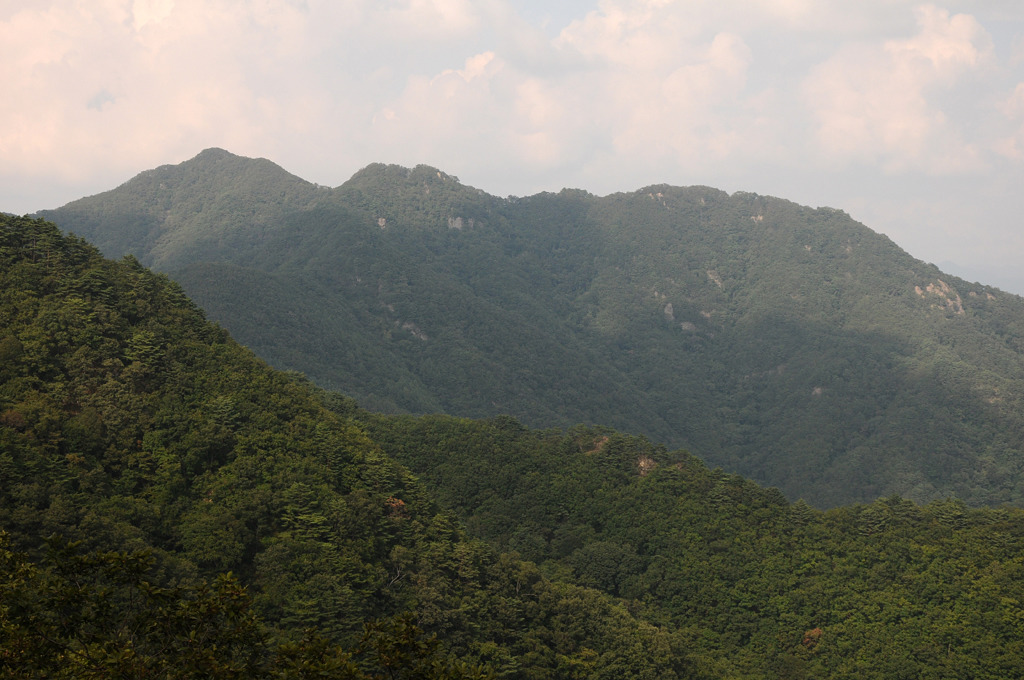 12. 멀리 오른쪽은 병무산, 그 왼쪽은 발교산, 앞 능선은 태의산에서 북동진한다