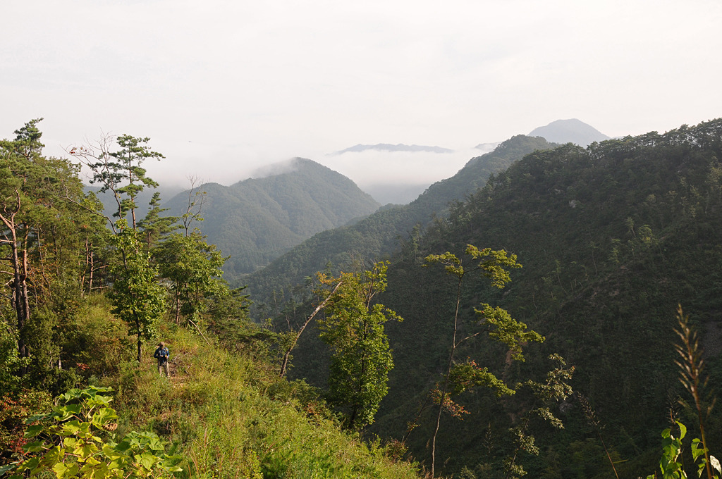 잠시 바윗길이 오늘 산행 최고의 경점이다. 느닷없이 펼쳐지는 원근 산첩첩 수묵농담의 가경