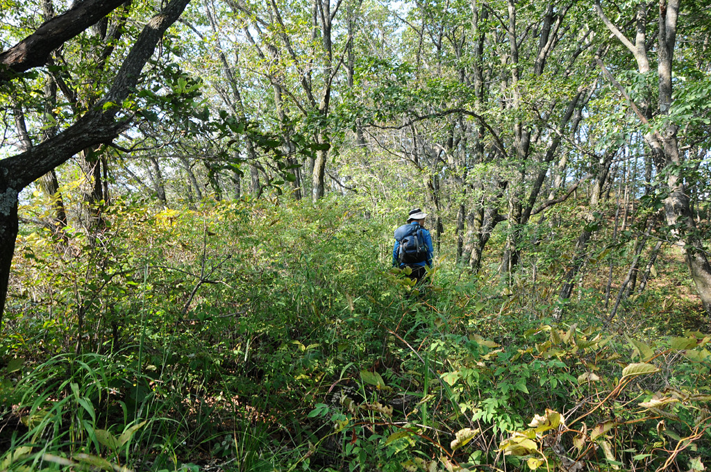 능선은 예전에 벌목하여 모수가 듬성듬성하고 풀숲이 잔뜩 우거졌다. 능선 오르는 도중 숨