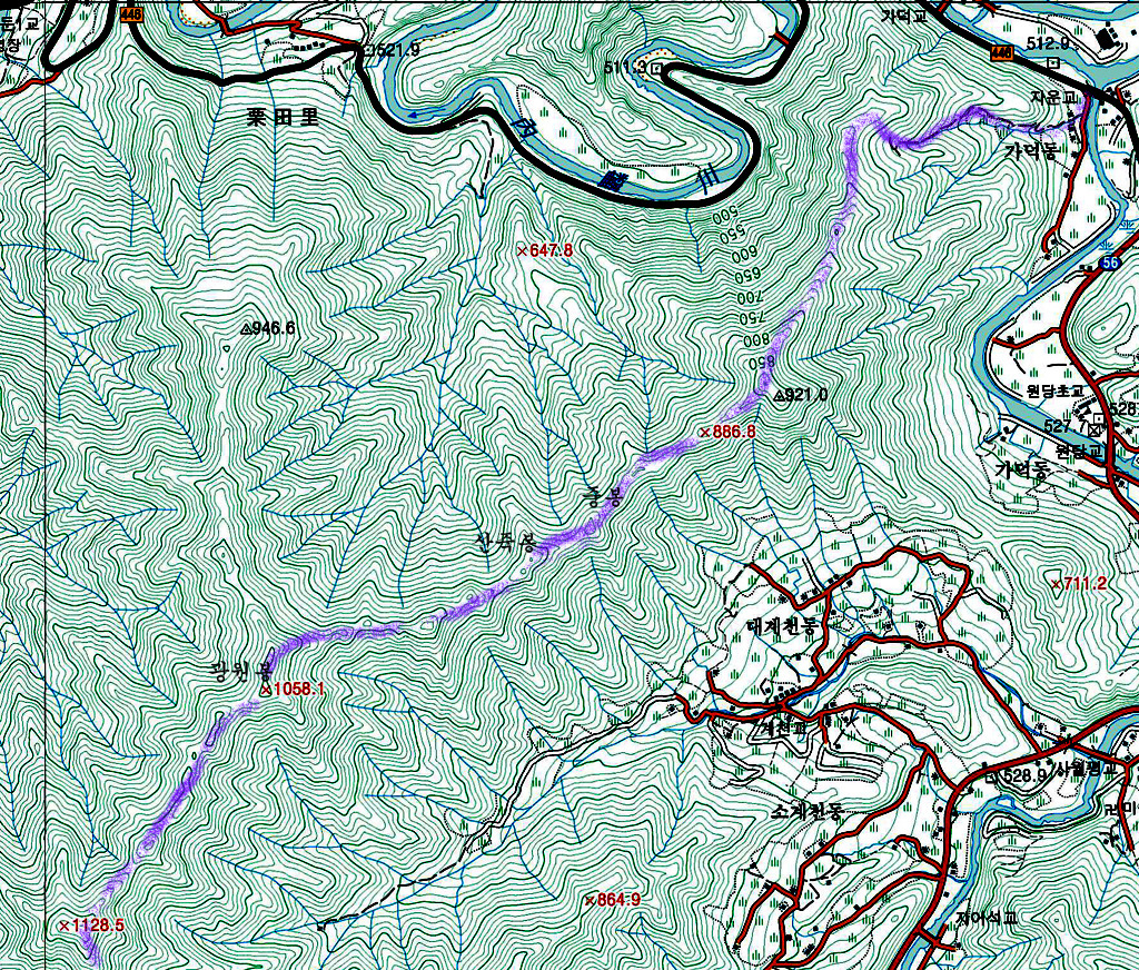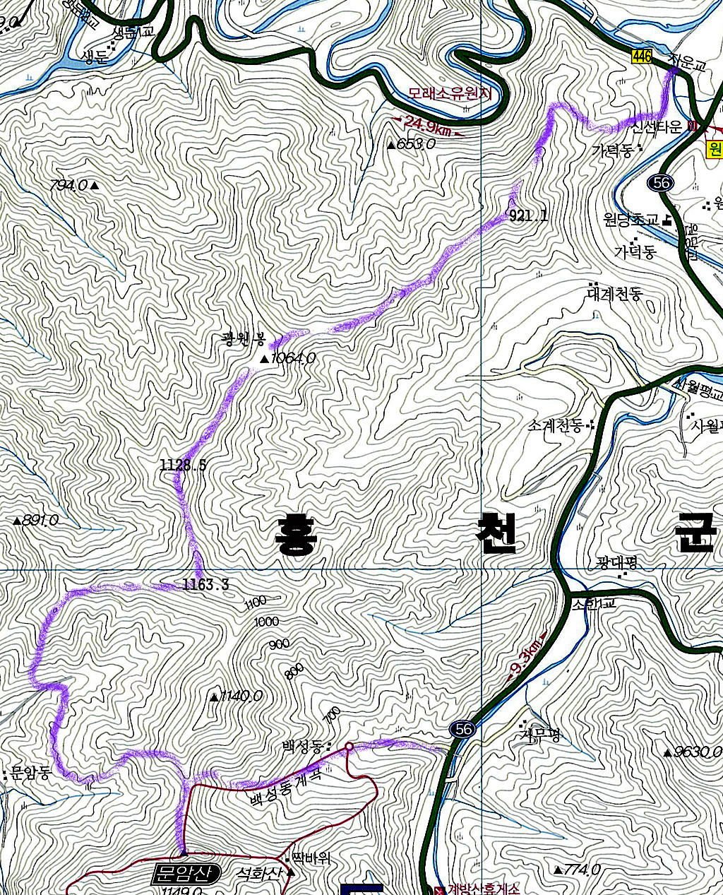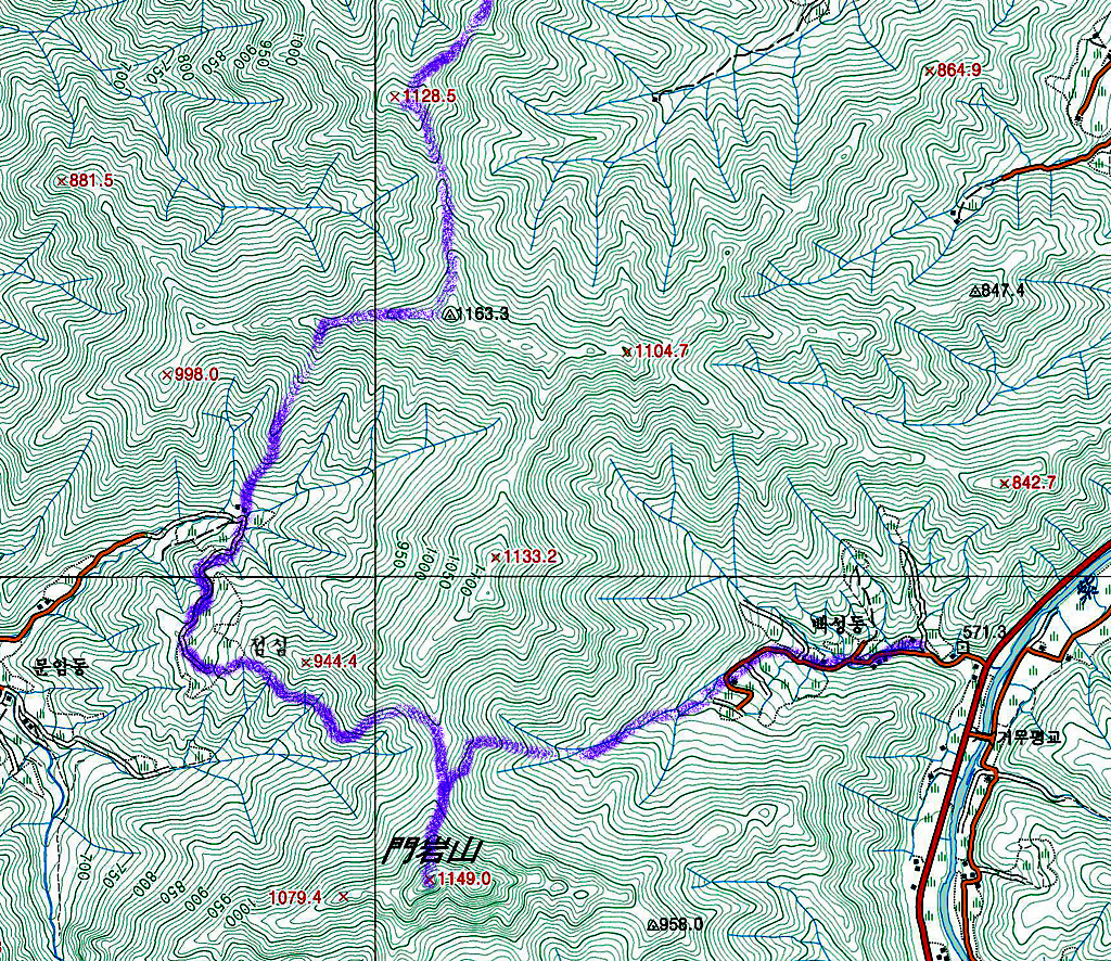 1-2. 산행지도(문암산, 국토지리정보원 지형도, 1/25,000)