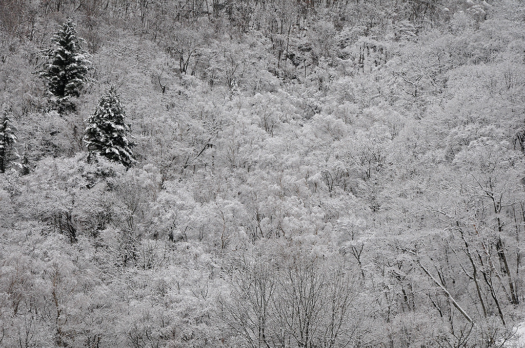 를 데 없이 쭉쭉 내린다. 넙데데한 설원이 나오고 지도 읽어 오른쪽 낙엽송 숲 사면을 내린