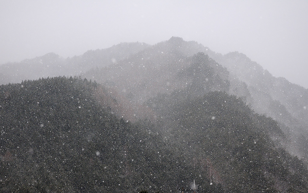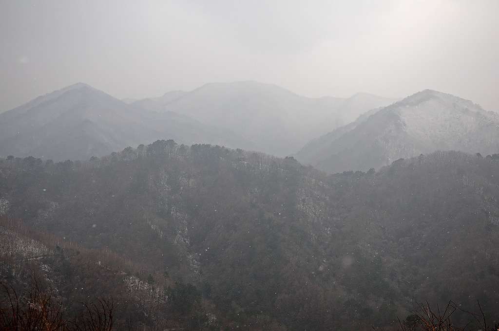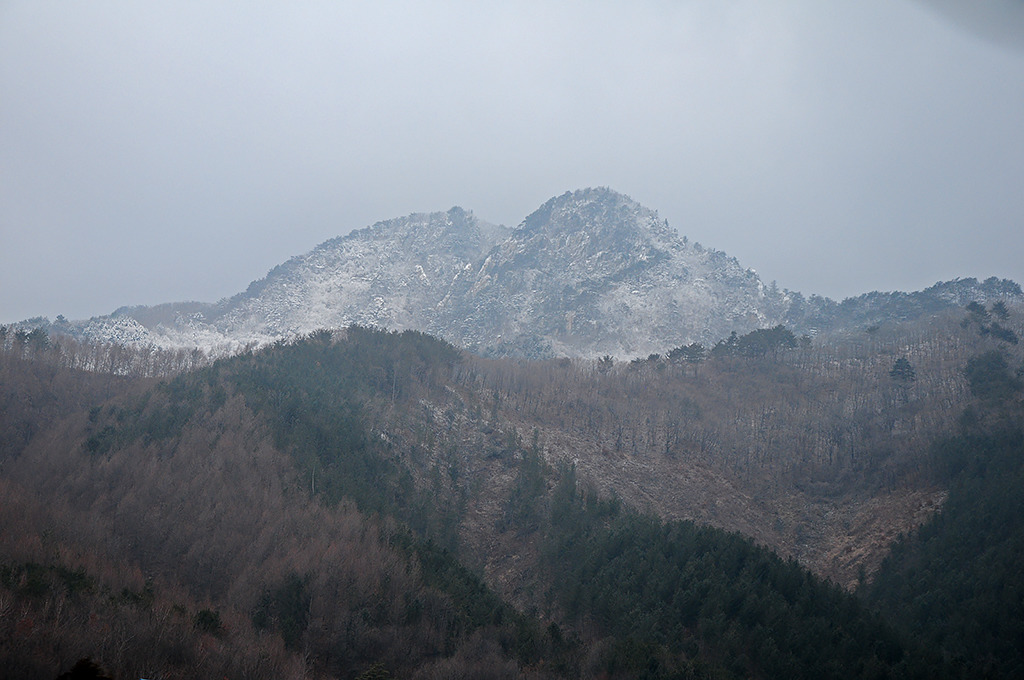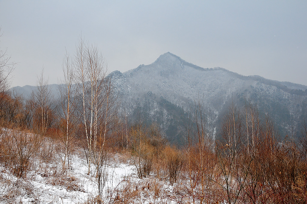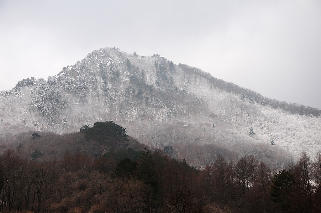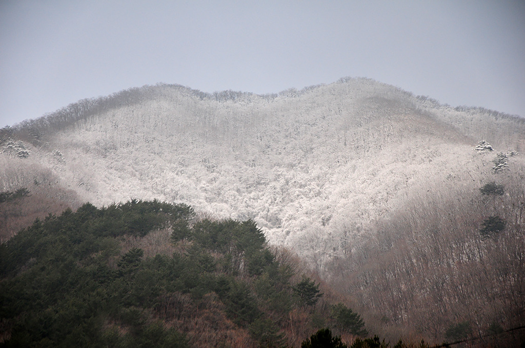 어제 내린 비가 이곳에서는 눈으로 왔다. 창촌 지나면서 바라본 차창 밖의 문암산이 설산이