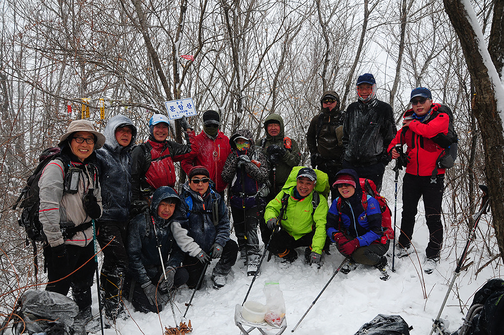 다. 눈보라를 뚫고 설원을 누비는 우리 일행들의 모습이 눈꽃보다 더 아름답다. 1,058.1m봉.