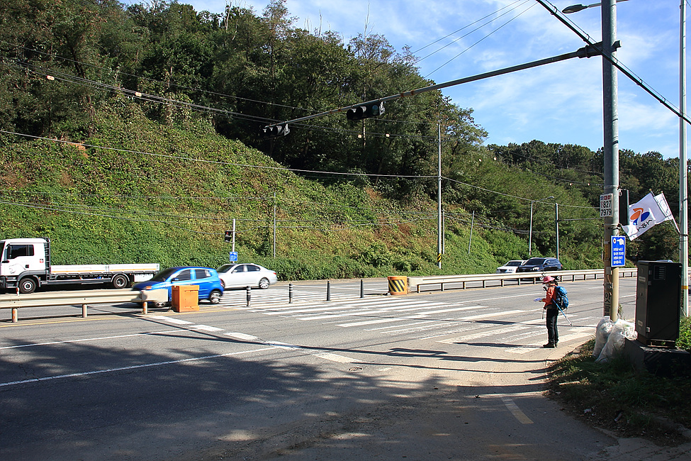 능선을 따라 내려오니 왕복4차선의 283번 지방도가 나타나고....