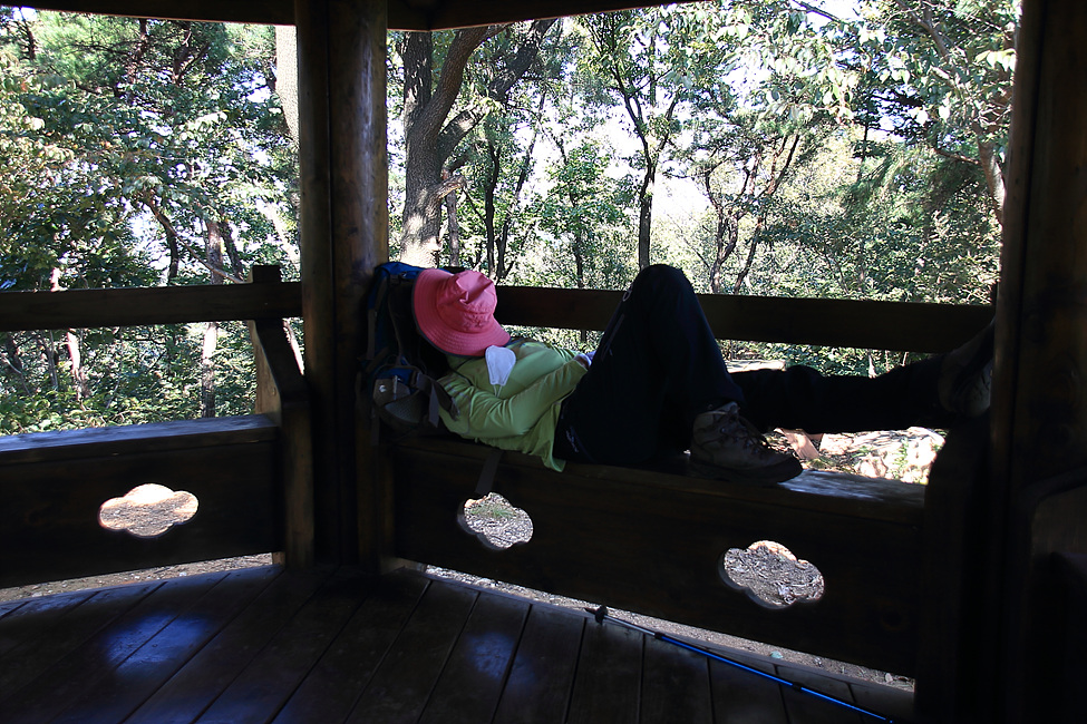 양지산정자에서 숙이님은 아예 누워서 푹 쉬었다가고....