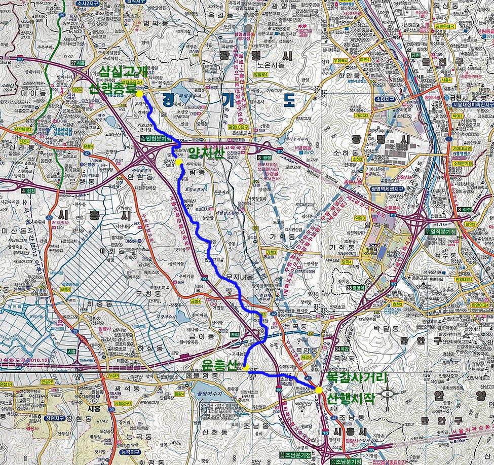 경기도 시흥시 목감동 목감사거리 - 목감초교 - 운흥산 - 방죽재 - 봉재산 - 양지산 - 시흥시 계수동 삼십고개