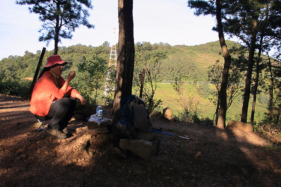 우리는 초교 우측 오솔길을 따라 120 m 봉을 향해 올라간다....