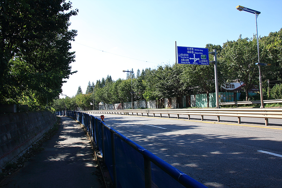 앞에 외곽순환고속도로를 맞닥뜨리지만 우측의 군부대 철조망은 계속 처져 있고,