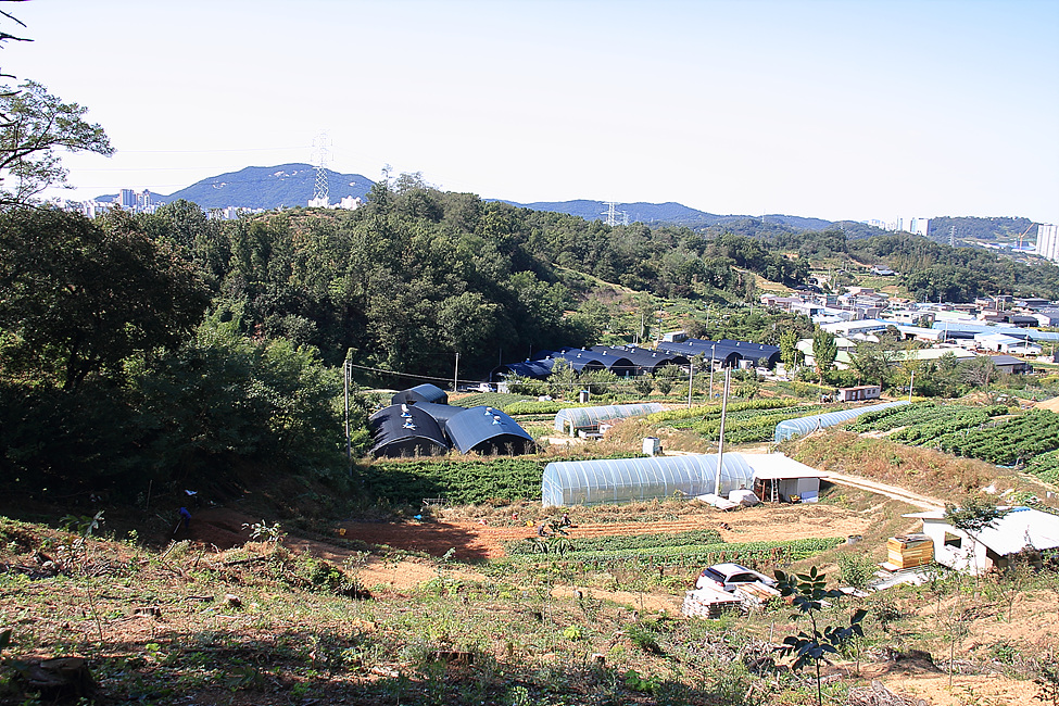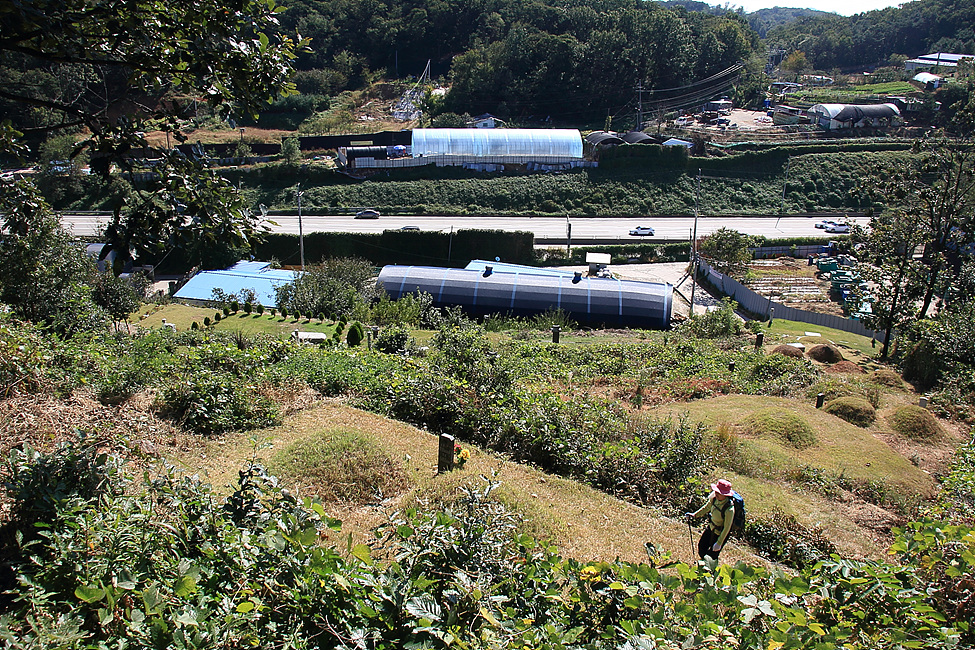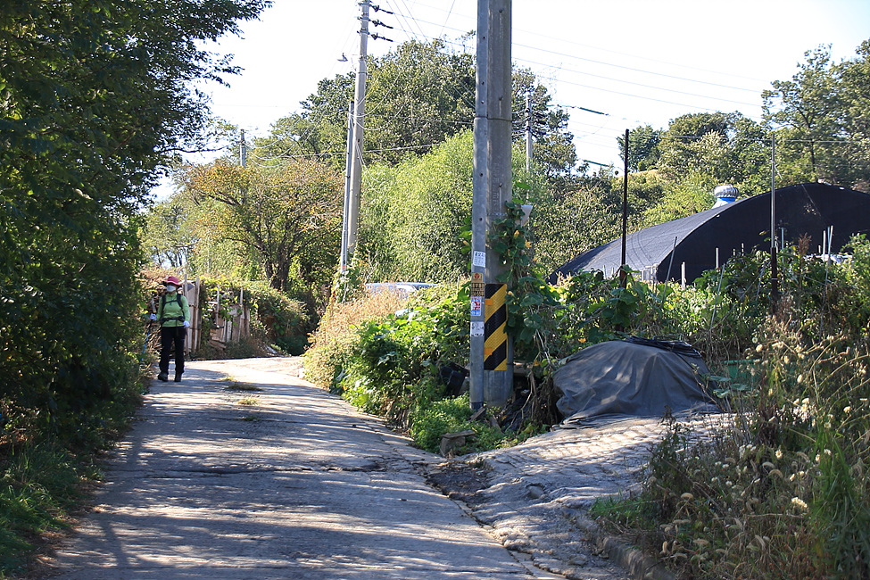 굴다리 지나 좌측으로 있는 시멘트 도로를 따라 고개 끝까지 올라가니