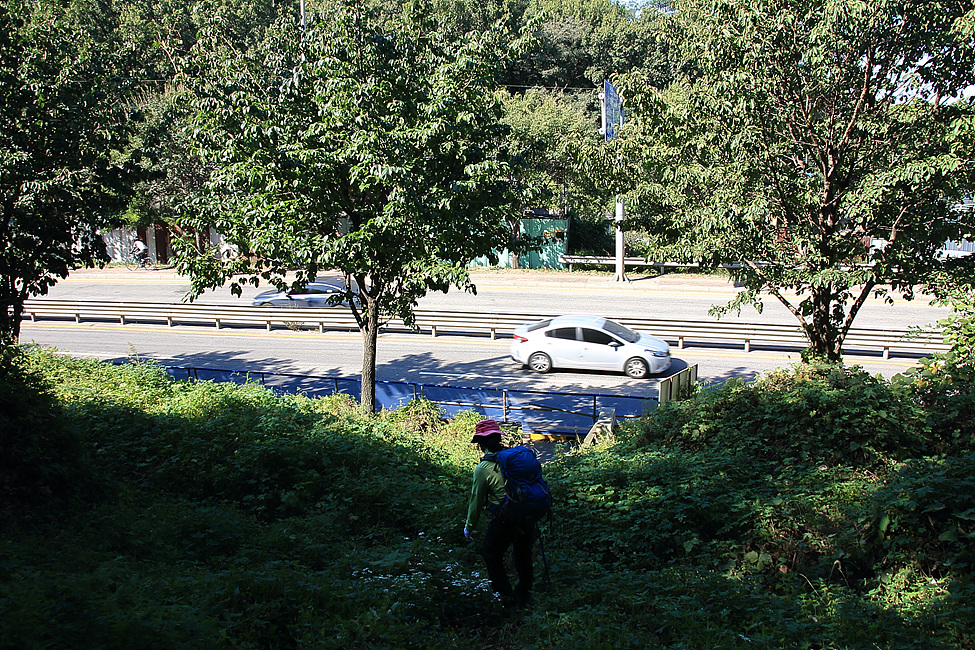 같이 방음벽 끝나는 곳까지 빨리 지나 우측으로 올라간다....
