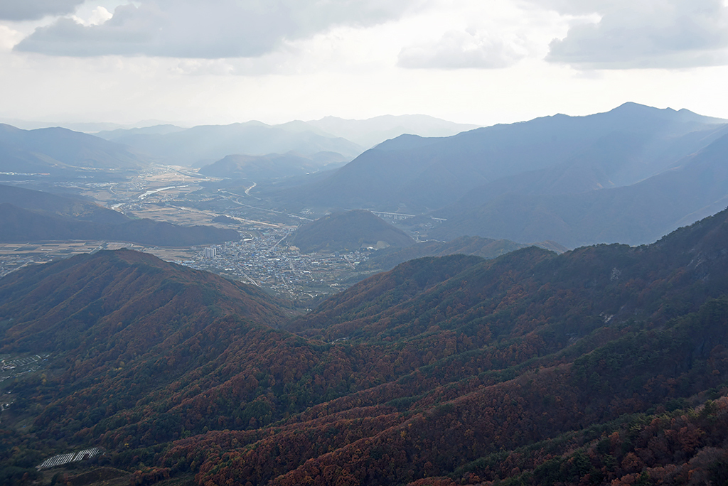 32. 중간 가운데는 문경 시내, 오른쪽 멀리는 황학산
