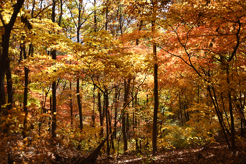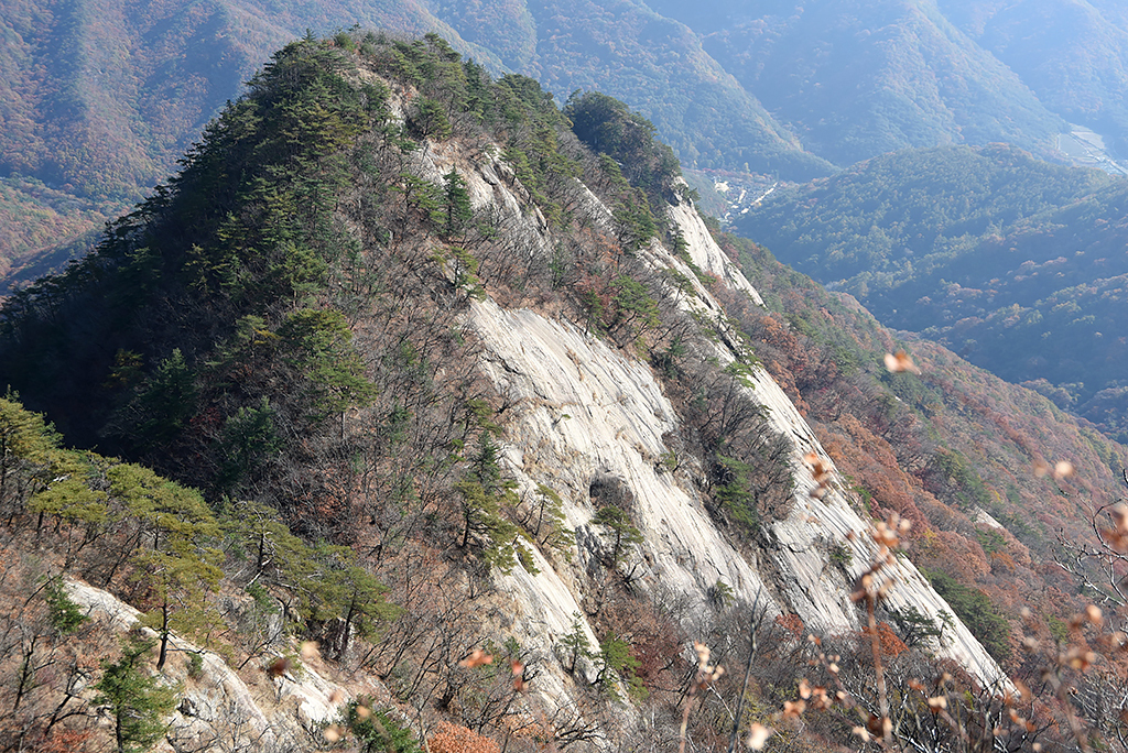 마침내 계류 밭고 넙데데한 사면이다. 낙엽이 인적 가려 일로 직등한다. 내 거친 숨에 낙엽이 들썩인다.