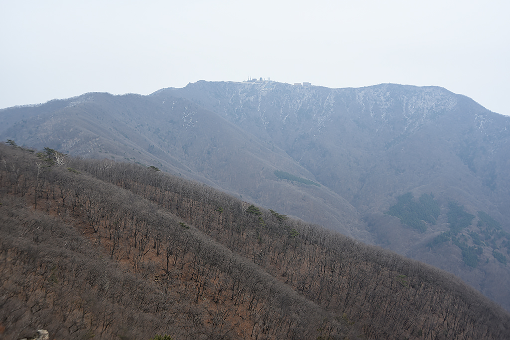 가 여태 온 능선은 이정표에 새삼스레 ‘등산로 없음’이다. 다시 긴 오르막이 이어진다. 등로 옆 너른 사면을 둘러보면