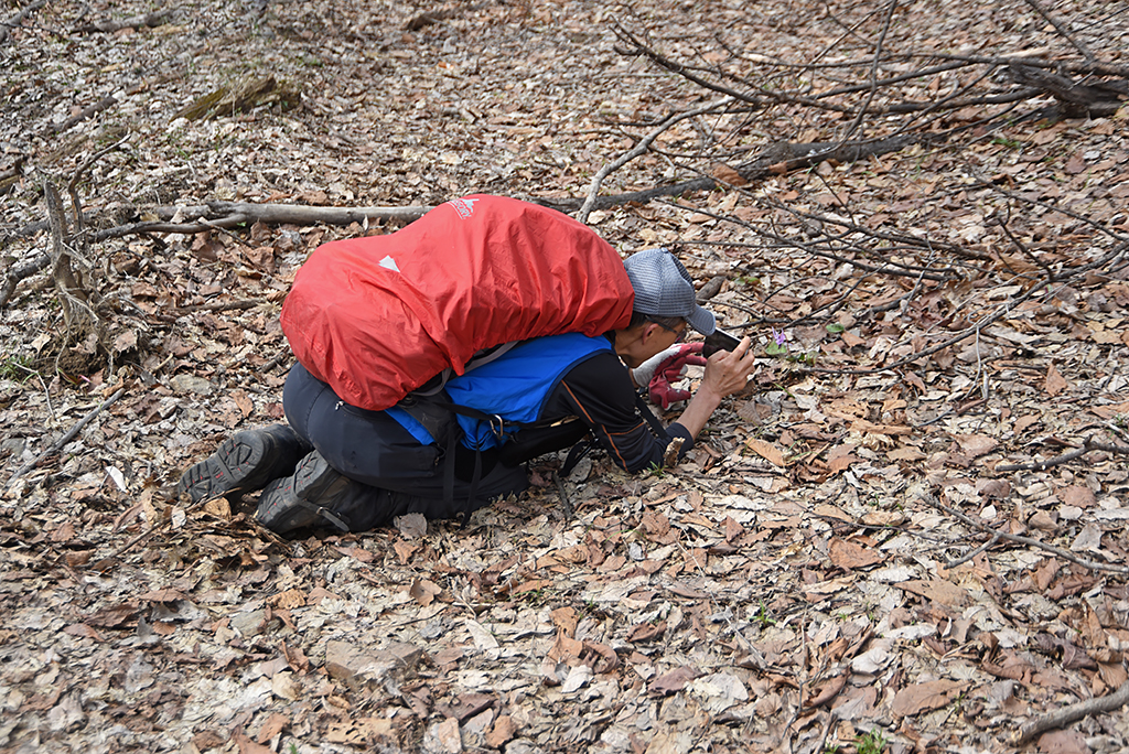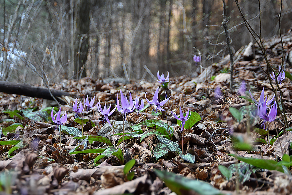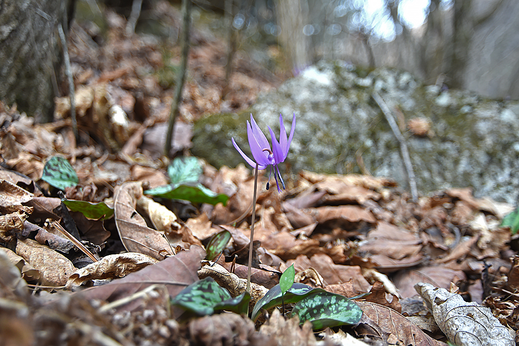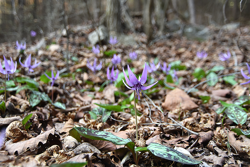 얼레지 군락을 본다. 오늘 산행의 화려한 대미를 장식한다. 더욱이 반가운 일은 봉고차를 타고 온 두 분의 등산객이