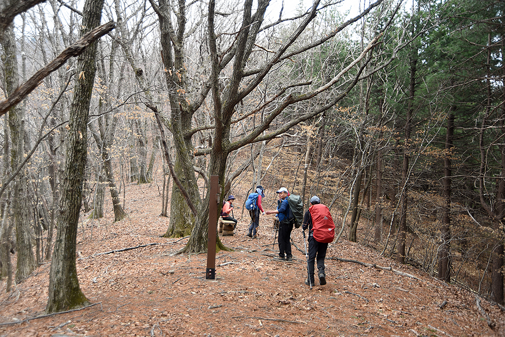 우리 외에 다른 두 팀은 각각 부부와 친구 2명이다. 우리는 이정표가 안내하는 등로보다는 아직 가 보지 않은 지능선