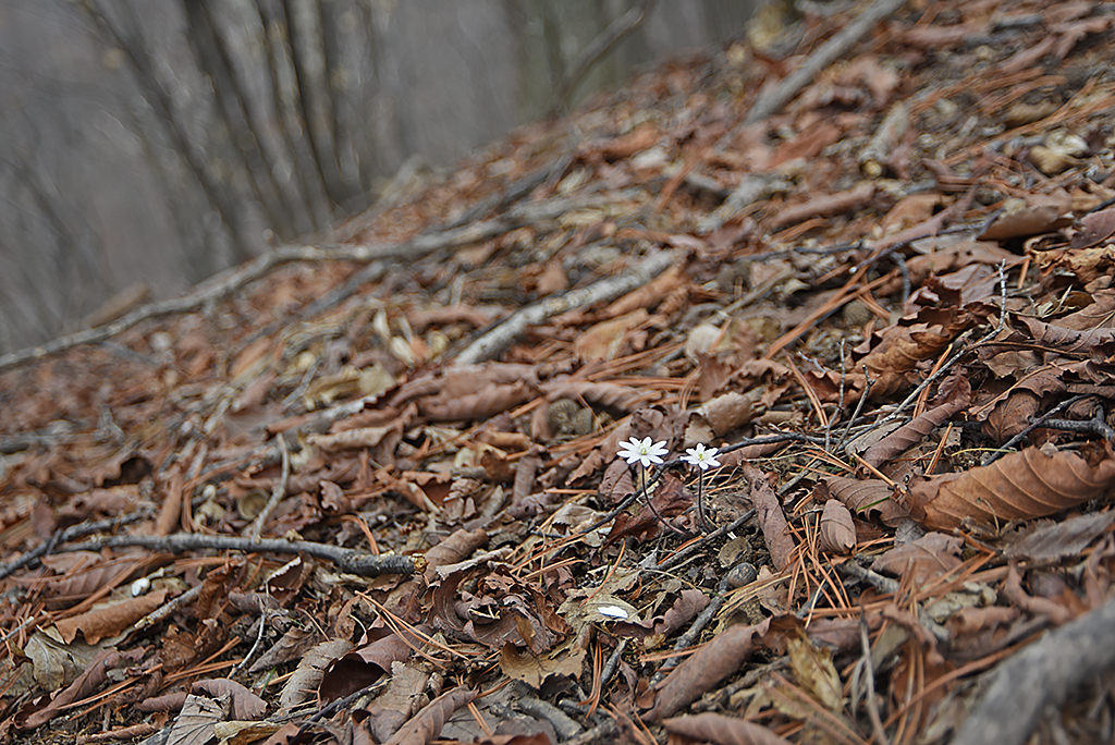 점점이 노루귀 꽃이다. 일일이 다가가 납작 엎드려 눈 맞춤한다. 살그머니 카메라 셔터 누른다. 적막한 산중에 메아