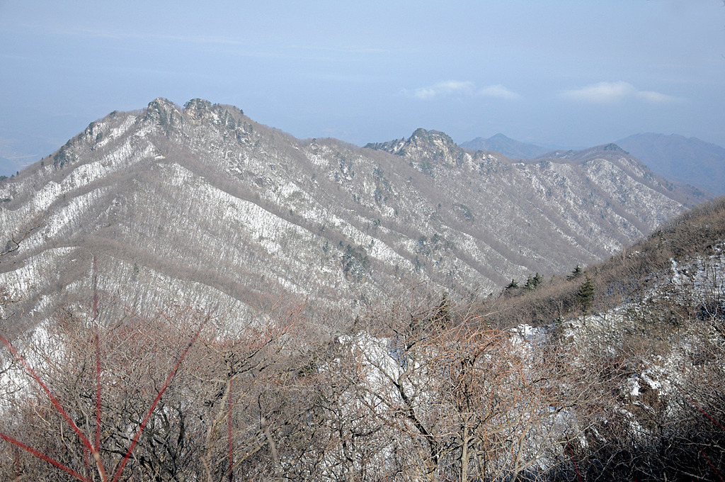 름이다. 등로 살짝 벗어난 전망 좋을 바위에는 잡목과 눈밭 헤치고 꼬박 들린다. 발돋움하여