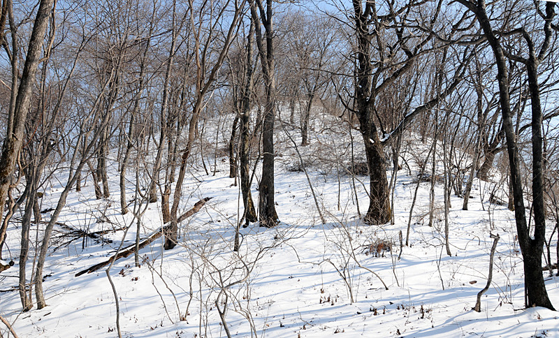 주릉 진입. 남대봉에 이르는 서릉은 금줄 치고 막았기도 했지만 아무도 오가지 않았다. 그리