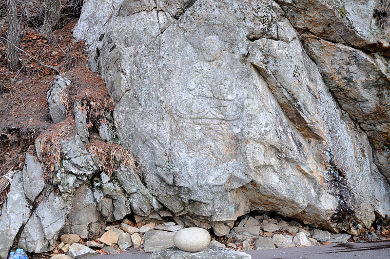 름 석 자가 볼썽사납다. 산모퉁이 돌아 20m 가면 마애불좌상이 있다. 암벽에 부처를 부조