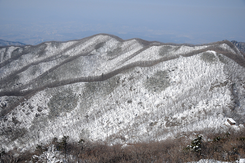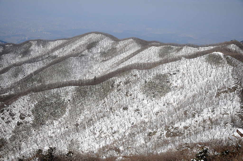 엊그제 도심에서 흩뿌리던 비가 산에서는 눈으로 내렸다. 발목 덮게 쌓였다. 지능선 마루에