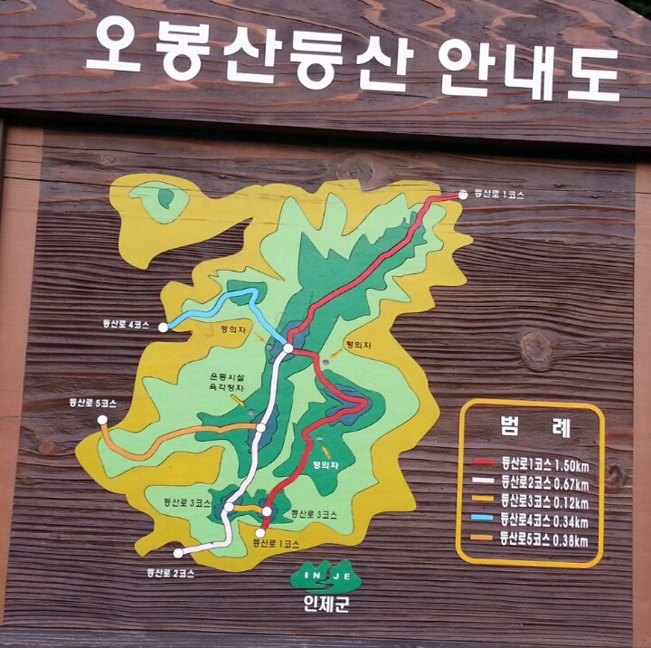 원통으로 내리는 길이 1.5km인데 오봉산이란다.