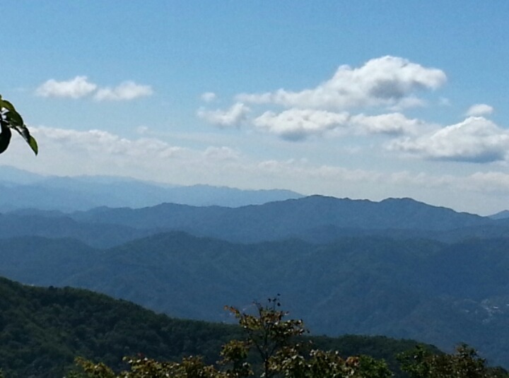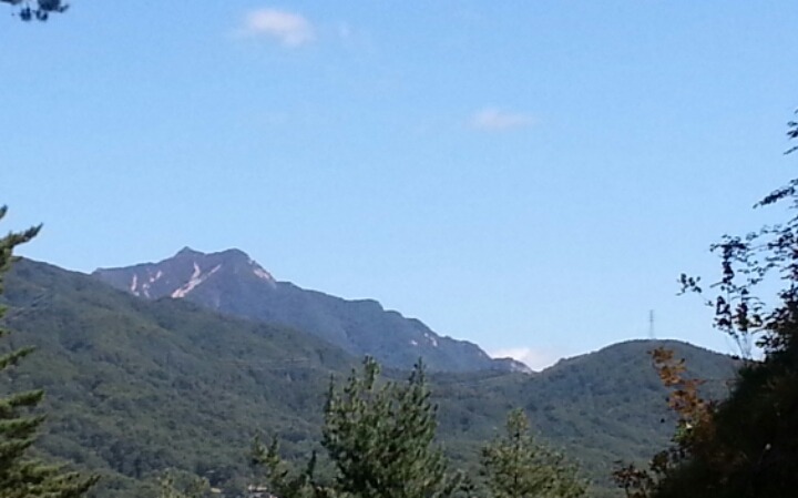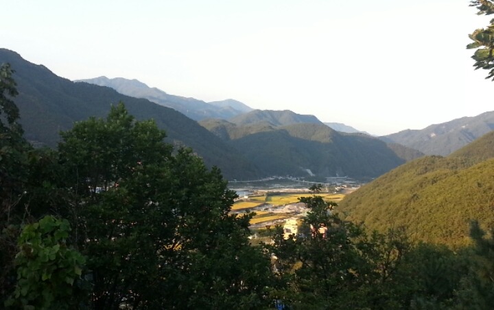 힘든 산행을 마무리 하고.. 원통이다. 노란 두메님 차가 오른쫔 나무 사이로 보인다.반갑다!