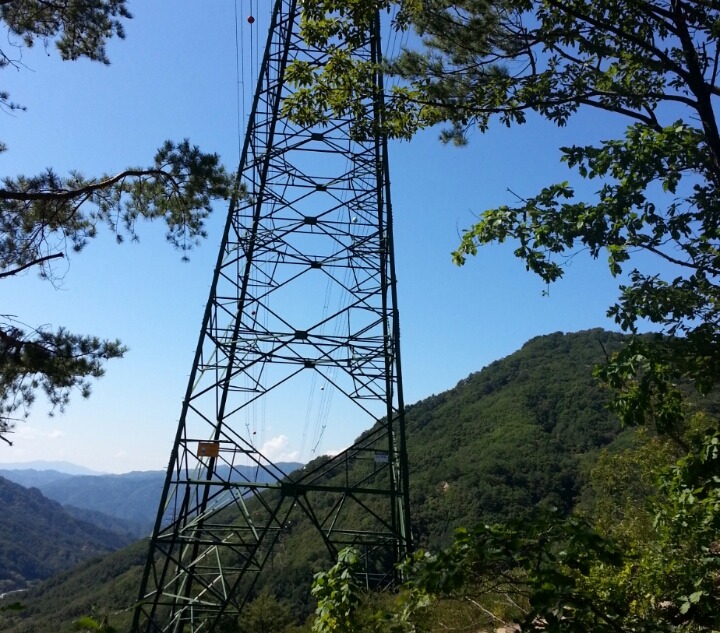 우리는 산길로 접어들며 고도 400을 올려야 하는 고난의 서곡이 시작 된다. 철탑 있는 곳에 이르고 이 철탑 우측으로 오른다.