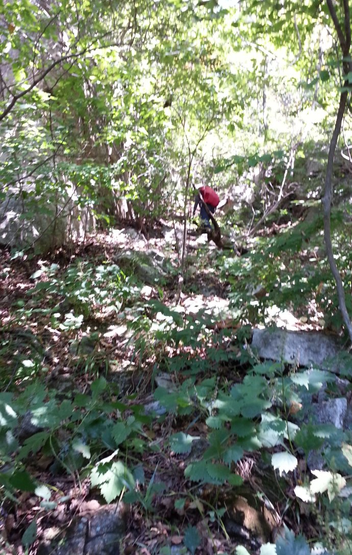 두번째 휴식 후에 해마님은 좌측으로 오르고 우리는 직등 하는데 가다가 낭떨어지 길에 이르고, 되돌아서 나오며 다시 내리려고 하니 해마 님이 저쪽에서 보고 그 곳도 낭떨어지라고 못내리게 해서 할수 없이 끝까지 되돌아 길로 가지만 역시 가파르게 내리고.. 내린 만큼 또 오르니 죽을 맛..아무 생각이 없다.그냥 간다.