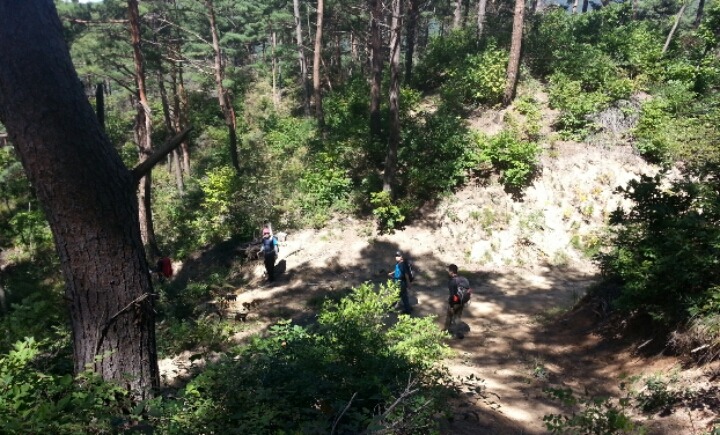 임도에서 휴식 중