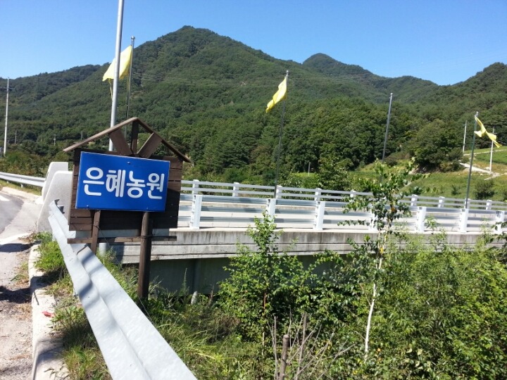 보이는 비닐 하우스와 건물이 은혜농원이다.