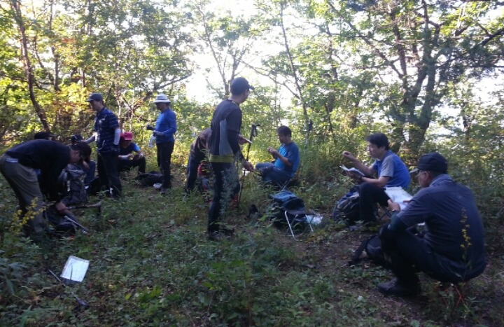 기상관측장비 옆으로 좌(북동쪽 )로 내려서 임도로 내린다.임도 좌측 산으로 올라 무덤한기를 발견하고 북쪽으로 좌틀하여 덕전리 마을로 향해서 내린다.이제 계속 내림길이다.황적송들이 이곳에 즐비해 있다.내림길에서 많은 수확을 하나보다.내려올 생각을 안한다.임도 삼거리가 나오고 ..거기서 가로질러서 가니 임도를 다시 만나 계속 내려온다.버스가 5번 도로가에 있다.뒤이어 총대장 님,악수 님등 속속 도착하고..많은 수확을 했다며..우리는 그 도로 옆에서 점심을 먹는다.