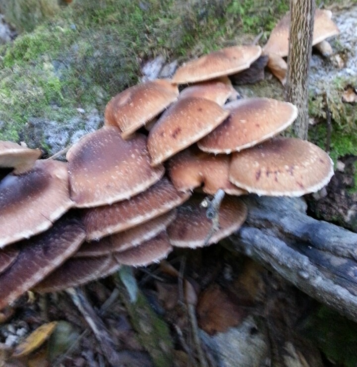 가로지르며 오르느데 총대장 님의 환호소리..표고버섯이 쓰러진 나무둥치에 다닥다닥 붙어 있다.오늘 저녁 삼겹살에 포식이다.