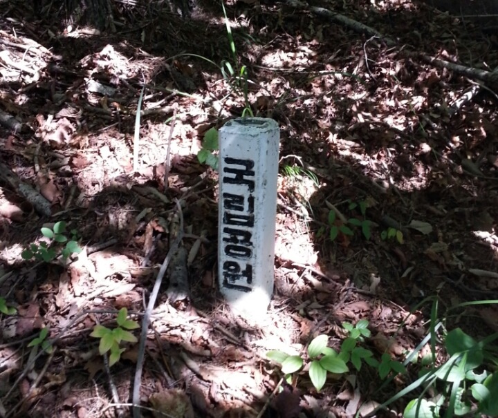 임도에서 즈문 님과 난 총대장 님에게 독도법을 듣는다.임도는 계속 능선을 따라 돌다가 능선이 임도와 하나가 되기를 반복하므로 굳이 능선을 따르지 않아도 된다고..그러나 우리가 가야할 방향이 능선 좌측이면 능선을 오르는 것이 유리하지만 능선 오른쪽으로 나아갈 때는 굳이 오를 필요가 없다고 하신다.